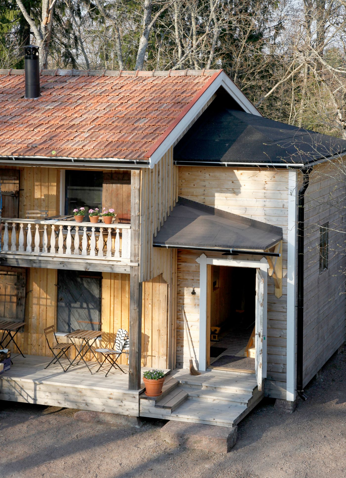 Muutama vuosi kartanon hankkimisen jälkeen teimme kaupat pihapiirin toisella laidalla olevasta emännöitsijän talosta, josta tuli meille työtalo, konttori. Nyt se on kunnostettu majoituskäyttöön. Nimesimme sen Vierastalo Terikoffin 1800-luvun tilan omistajan mukaan.