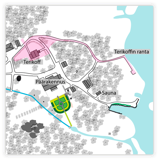 - Navigaattorit voivat ilmoittaa perilläolosta vähän liian aikaisin, kääntykää Kiviniementieltä pihatielle vasta, kun olette kartanon viitan kohdalla.
